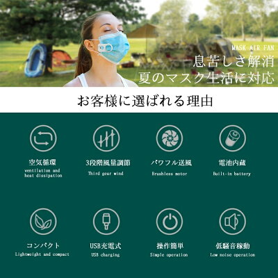 【2022最新モデル】マスクエアーファン マスクファン 目立たない 扇風機 クリップ 涼しい 蒸れ解消 熱中症対策 USB充電式 小型 超軽量 風量3段階調節 静音運転 おしゃれ 夏用 冷感 冷風扇 羽根なし扇風機 曇り防止 通勤 携帯 ミニ扇風機 アウトドア プレゼント 送料無料