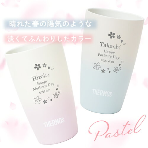 サーモス タンブラー 名入れ 【 ふんわりSAKURAタンブラー ペア 】 プレゼント ペアギフト おすすめ おしゃれ かわいい 真空断熱 保冷 保温 食洗機対応 桜 女性 友達 彼女 両親 夫婦 結婚祝い 結婚記念日 退職祝い 誕生日 お祝い JDM-340 340ml 送料無料 翌々営業日出荷