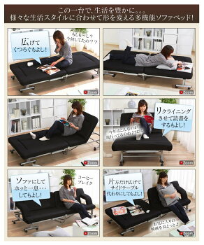 ソファもベッドもこれ1台!最大なんと6変化?! ソファを置きたいけどスペースが足りない… そんなお家にオススメの大人気ソファベッド! ソファとして使っても、ベッドとして使っても 14段階のリクライニングでゆったりくつろげます♪