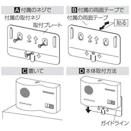 ●電池寿命は約3000回 ●取付方法は付属の取付プレートを木ネジか両面テープで固定します。