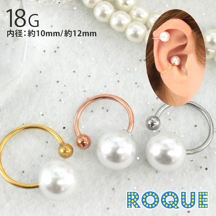 ボディピアス 18G ビッグパールイヤーカフ サーキュラーバーベル(1個売り)◆オマケ革命◆