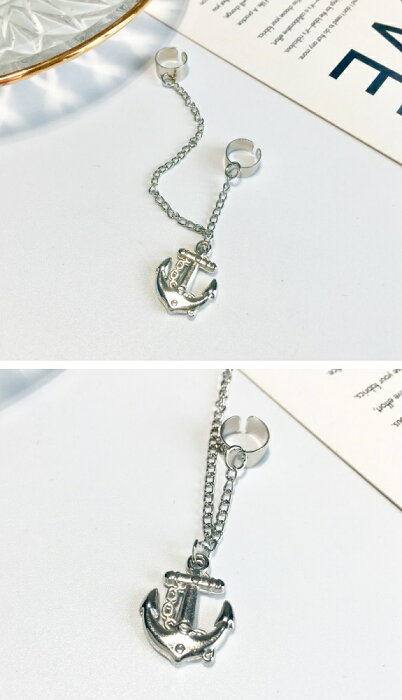 アンカーチェーンイヤーカフ 《シルバー》 レディース メンズ フェイクピアス ノンホールピアス [定形外郵便、送料無料、代引不可]