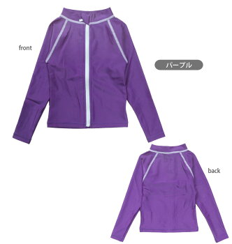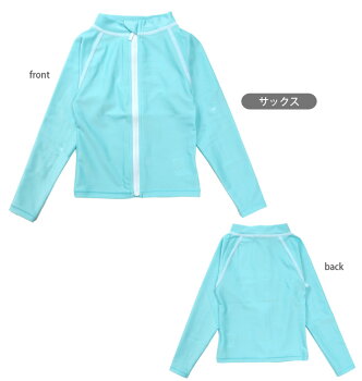 キッズ水着 女の子用長袖ラッシュガード 100 110 120 紫外線防止 UV 日焼け防止 子供 子ども 女児 おんなのこ 長そで ジップアップ ジッパー 前開き ファスナー 無地 ネオンカラー 蛍光色 サックス パープル ピンク イエロー メール便送料無料