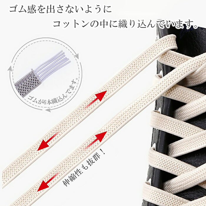 長時間使用しても 快適なフィット感が続き、紐製とは違い汚れにくい! ●普通の靴ひもとほぼ同じ見た目です。