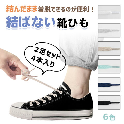 結ばない靴紐 メンズ レディース 便利 おしゃれ 靴紐 結ばない スニーカー 靴ひも ゴム ジョギング おしゃれ 大人 こども キッズ 解けない ほどけない ローカット 靴紐 ゴム シューレース【2足セット4本入】 全6色 100cm 120cm