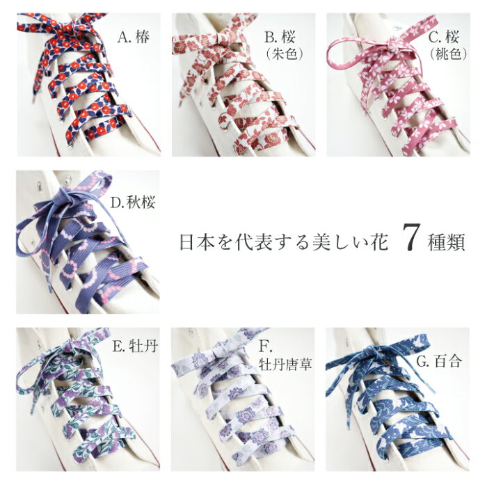 ≪ はんなり 和の花柄靴ひも 7種 ≫ 日本を代表する美しいお花を靴ひもに納めました。