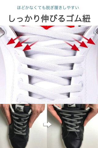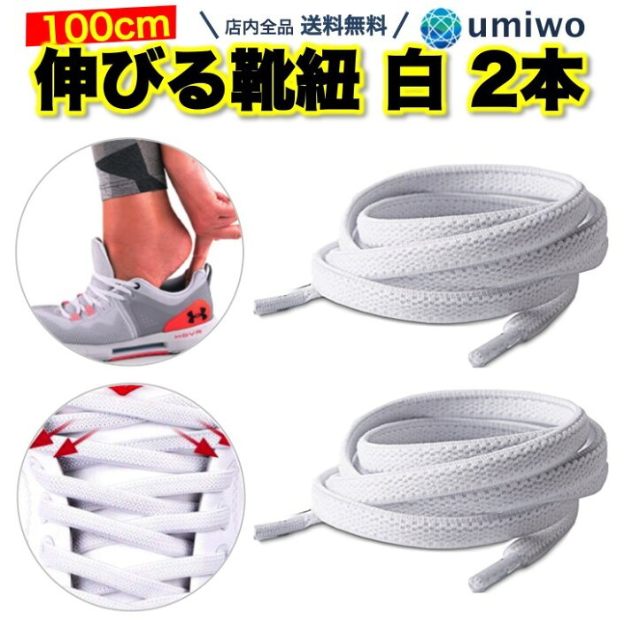 送料無料【高評価レビュー4.4点】伸びる靴ひも 白 100cm ゴム製 伸縮 シューレース スニーカー ローカット キッズ 子供 脱ぎ履き 着脱 簡単 スリッポン 伸びる 靴紐 コンバース ウォーキング ハイキング 無印 ホワイト 旅行 靴ひも シューズ 平紐