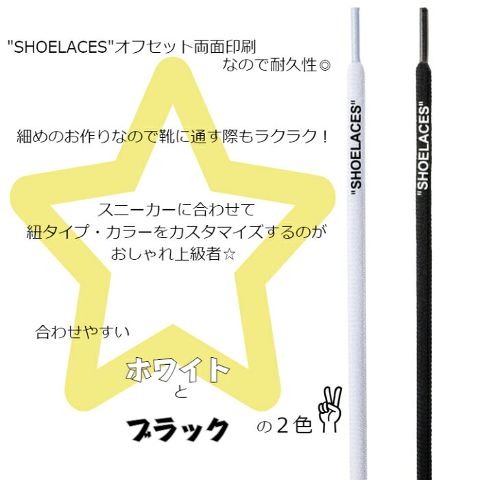 商品情報サイズ120/140/160幅:約6mmカラー〈全2色〉・ホワイト・ブラック商品説明”SHOELACES”プリントで加工され今話題の靴紐です(^O^)/高級オフセット印刷のためプリントの耐久性がかなり高く、普段使用していても剥がれません。