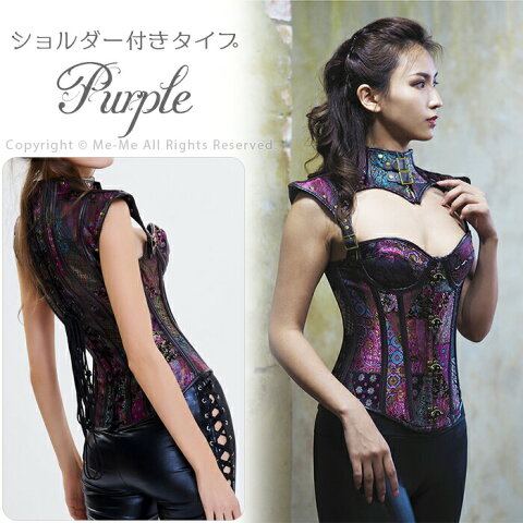 スチームパンク コルセット[sl51720][ec5901] 選べる2type・2color! S〜XXLサイズ フェイクレザーとジャガード生地の異素材使いが美しいコルセット♪