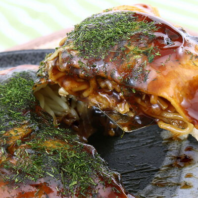 【美味しく、お腹いっぱい!大満足のお好み焼と焼きそばの組み合わせ】現在の広島流お好み焼は半世紀以上前から続く「みっちゃん」のアイデアの集大成ともいえます。